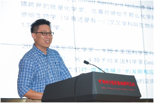 2018年诺贝尔化学奖授予了美国科学家Frances H Arnold、George Smith和英国科学家Sir Gregory P Winter,以表彰他们在酶的定向进化,肽类和抗体的噬菌体展示技术方面的贡献。王曦副研究员是中科院青促会会员,研究方向是内质网蛋白质氧化折叠。他本次解读报告的题目是“酶的定向进化复制自然的设计”,重点介绍了Frances H Arnold在实验室复制自然界改造酶的策略,对酶开展了人工定向进化。定向进化开发的酶已经广泛用于生物燃料,化学品材料和药物的工业生产,它改变了我们的衣食住行和生活方式,也会影响着这个世界的未来。王曦副研究员还强调了科普对于大众的重要性,呼吁科研人员积极投身科普工作。