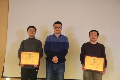 图16.田勇研究员、纪伟研究员为平台爱岗敬业奖获得者颁奖