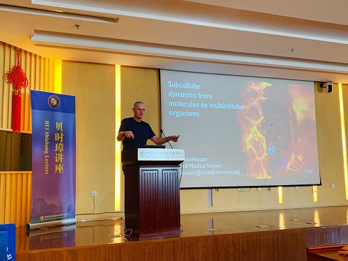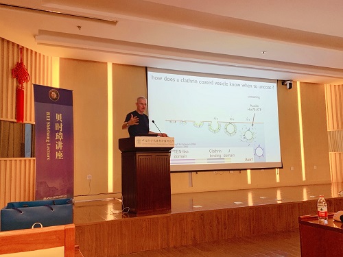 Tom Kirchhausen教授的报告内容丰富,引人入胜,尤其是其中的多个活细胞成像结果令人震撼和印象深刻。报告结束后,多位研究员和学生踊跃提问,Kirchhausen教授认真地回答了每一个提问者的问题,并与大家进行了深入的讨论。大家收获颇丰,整个会场学术气氛浓郁,最后报告在热烈的掌声中结束。