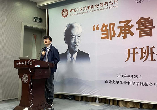 2020年9月25日,“邹承鲁菁英班”协议签署暨开班仪式在南开大学生命科学学院隆重举行。南开大学曹雪涛校长、生物物理所许瑞明所长出席相关活动。双方在致辞中一致认为:通过优势互补、携手共建“邹承鲁菁英班”,在未来5年将中科院的名师、学术前沿思想、国家级科研平台资源引入南开大学本科生培养中,实行津京两地“2.5+1.5”培养模式,科教结合提高本科生的科学素质与科研实践能力,联合培养一流科技英才。生物物理所王志珍院士亲自为“邹承鲁菁英班”上了开班第一课,她向与会师生们介绍了邹承鲁先生为我国首次人工合成胰岛素所做出的杰出贡献。通过报告邹承鲁先生艰苦卓绝的科研历程,启发现代青年学生们勤于思考、敢于质疑,以老一辈科学家为榜样,刻苦钻研、科技报国。许瑞明所长也通过与师生们分享自己从一名物理学家转变为生物学家的经历,鼓励学生们大胆探索,从失误中吸取教训,变弱点为强项,突破自我,不断拓展前行。