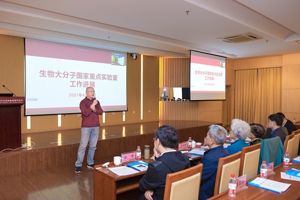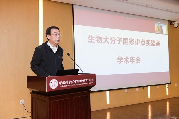 生物大分子国家重点实验室学术年会于4月29日在生物物理研究所9501会议室召开。本次会议采用线下和线上结合的方式,在图书馆设置了分会场,另有各课题组部分人员在线参会。实验室学术委员会主任施蕴渝院士,委员李林院士、陈晔光院士、舒红兵院士、王志珍院士、段树民院士、张先恩研究员、许瑞明研究员,以及实验室研究组长、学术骨干、研究生、研究所职能部门负责人等参加会议。科技部高技术研究发展中心国家重点实验室管理处闫金定处长应邀出席会议。