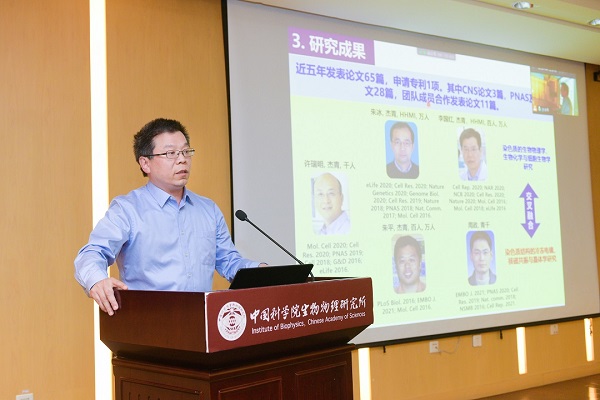 柳振峰研究员、李国红研究员、王晓晨研究员、江涛研究员和李栋研究员分别代表膜蛋白结构与功能、表观遗传、细胞内膜系统、疾病发生与防御、生物成像技术等五个团队,报告了五年来的研究进展和未来发展计划。王祥喜研究员、周政研究员、张宏研究员和章新政研究员就本课题组近一年来的突出成果向大会进行了汇报和分享。