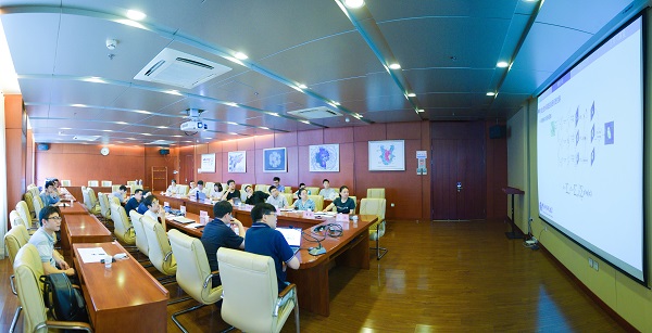交流会安排紧凑,先后进行了6个学术报告,包括左真涛"学习的视觉编解码研究"、叶齐祥"基于分歧与协同的弱监督视觉目标定位"、谷陆生"单分子干涉定位技术及应用"、杨志勇"惰性对表面化学反应及界面结构演化的影响",王卓然"环境响应性多肽纳米载体用于药物递送研究"、李琳琳"电活性生物材料及系统与生物医学应用"等。两个青促会小组和各位其他参会人员一同,就光学成像、深度学习、纳米电化学材料等交叉学科进行了热烈且有深度的研讨。会议议程经过了精心安排,两个青促会小组提供的三个报告在研究方向上深度接洽,互补共通,顺序依次穿插,起到了很好的交叉融合的交流效果。