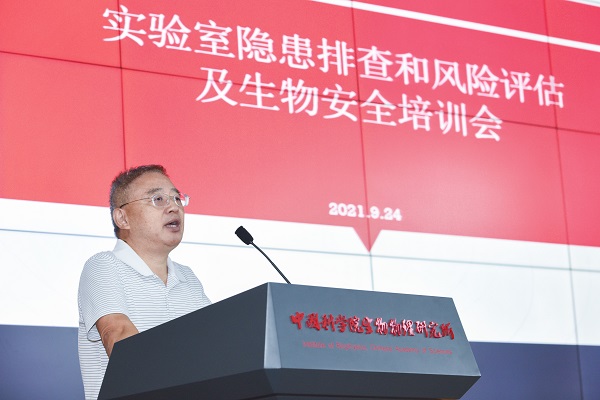 按照院办公厅相关工作部署,9月24日上午,生物物理所在6号楼10层报告厅举办实验室隐患排查和风险评估及生物安全培训会。所纪委书记杨兴宪出席会议并致辞,副所长许航、所综合处、科技处、公共事务办公室、安保办等相关部门负责同志出席会议。所各重点实验室、研究组及管理和支撑部门安全员参加培训。会议由综合处处长郭宗慧主持。