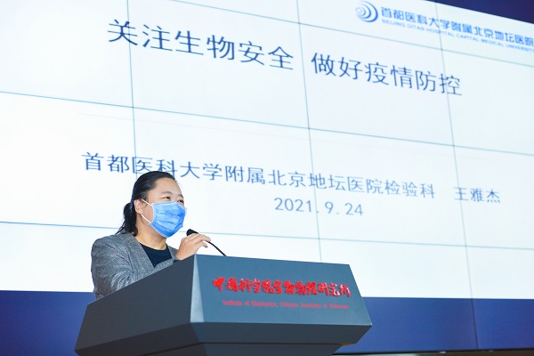 此次培训会特邀请院办公厅科技安全处李超杰和北京地坛医院检验科主任王雅杰,分别作题为"实验室隐患排查和风险评估"和"重视生物安全 加强疫情防控"的培训报告。首先,李超杰介绍了开展实验室隐患排查和风险评估工作的背景和重要意义,重点介绍了实验室隐患排查和风险评估系统的使用及注意事项。随后,王雅杰主任分别从人员行为、设备配置、材料监管、设施环境和法规标准等五个维度介绍了加强实验室生物安全工作的重要意义和主要措施,并结合自身多年生物科研工作经验,谈了此次新冠疫情为我们今后进一步加强生物安全工作带来的启示。
