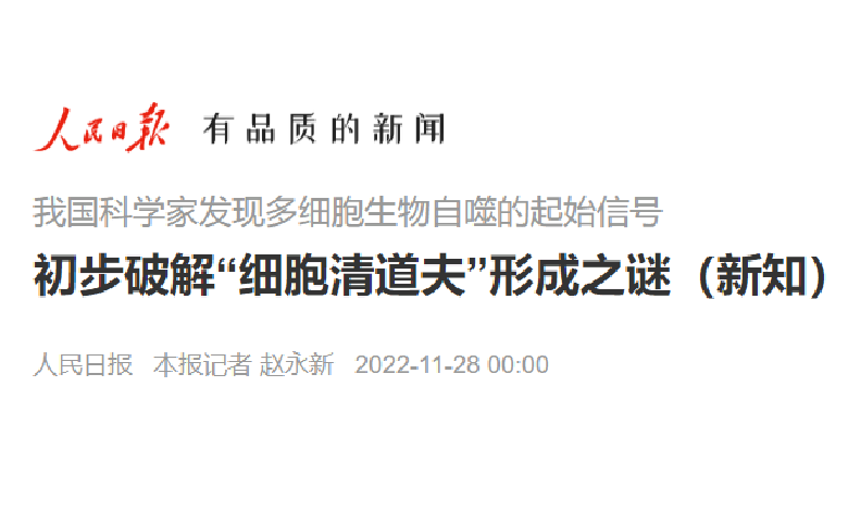 2022年11月28日,人民日报客户端报道了我所张宏课题组关于“多细胞生物自噬的起始信号”的最新研究成果,原文链接:https://wap.peopleapp.com/article/69343...