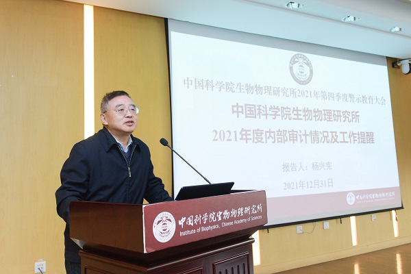 2021年12月31日下午,生物物理所组织召开2021年第四季度警示教育大会。所长许瑞明作专题讲话,党委书记刘力、纪委书记杨兴宪作专题廉政报告,大会由刘力主持。