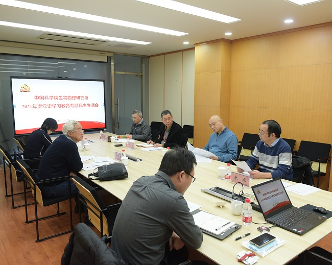 2022年1月26日,生物物理所召开党史学习教育专题民主生活会,所领导班子成员许瑞明、刘力、杨兴宪、朱冰参加会议。院党史学习教育第十指导组组长李志毅、成员庞微到会指导。党委书记刘力主持会议。