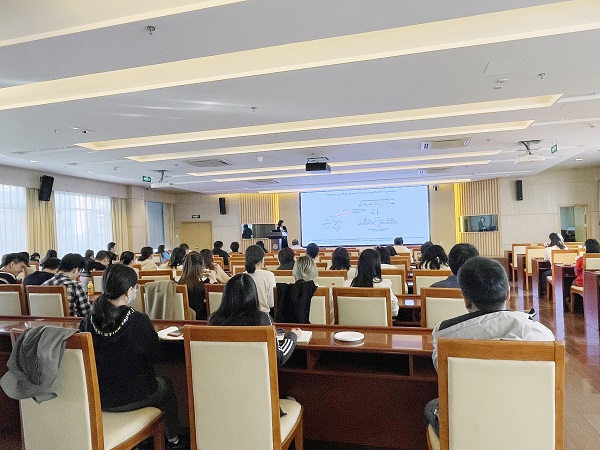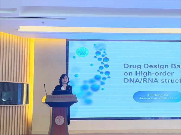 本次报告中,徐红博士分享了她的团队针对特异核酸二级结构-四链体DNA开展药物设计的理念和实践经验。提出四链体DNA药物还可用于治疗渐冻症、神经退行性疾病,并具有潜在的抗病毒疗效。徐红博士表示,核酸药物研究领域有巨大的潜力,预计未来将有更多基于DNA/RNA高级结构设计的药物进入临床。在交流讨论环节,现场的老师和同学们就核酸类药物的理性设计、国内外新药研发进展等问题踊跃提问,徐红博士详细地回答了每个问题。本次学术交流活动为将来开展进一步的"产学研"合作研究提供了良好的基础。