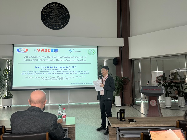 2024年10月25日,巴西圣保罗大学的Francisco R. M. Laurindo教授受邀做客生物物理所IBP Seminar,作题为"An endoplasmic reticulum-centered model of extra and intercellular redox communication"的学术报告。本次活动由王磊研究员主持。