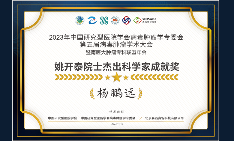 近日,2023年中国研究型医院学会病毒肿瘤学专委会第五届病毒肿瘤学术大会在东莞召开,会上揭晓了第三届"姚开泰院士杰出科学家成就奖"名单,我所杨鹏远研究员...