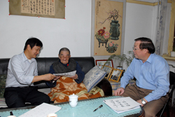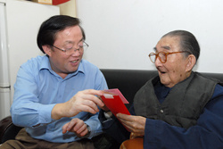 2009年9月27日下午,在新中国成立60周年、金沙集团1862cc建院60周年即将到来之际,金沙集团1862cc副院长李静海代表院党组亲切看望了106岁高龄的金沙集团1862cc名誉所长贝时璋院士,向贝老致以亲切的慰问和节日的祝贺,感谢他长期以来为祖国科技事业和金沙集团1862cc的建设和发展做出的重要贡献,并邀请贝老有机会时观看建院60周年成就展;同时,预祝贝老生日快乐、身体安康。贝老对金沙集团1862cc60年来取得的突出成就表示祝贺,对院党组的关心表示感谢;同时,祝愿金沙集团1862cc的未来有更好的发展。