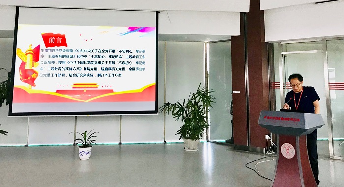 汪洪岩同志在讲话中指出,在全党开展“不忘初心、牢记使命”主题教育是党的十九大作出的重大部署。2019年5月13日,中共中央政治局召开会议,决定从2019年6月开始,在全党自上而下分两批开展“不忘初心、牢记使命”主题教育。6月11日,我院召开主题教育动员部署会,对全院开展主题教育进行动员部署。按照院党组、院直属机关党委、京区事业单位党委工作部署,我们制定了《生物物理所开展“不忘初心、牢记使命”主题教育工作方案》,已于6月17日提交院第六指导组审核同意。