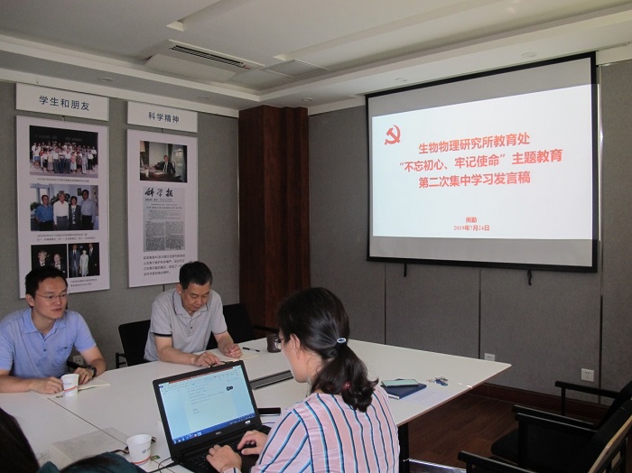 根据《生物物理所开展“不忘初心、牢记使命”主题教育工作计划》和所党委工作部署,7月25日教育处组织开展“不忘初心、牢记使命”主题教育第二次座谈交流会。教育处主管所领导副所长刘力、所长助理柳振峰出席并讲话。教育处六级职员及以上人员共6人参加学习。