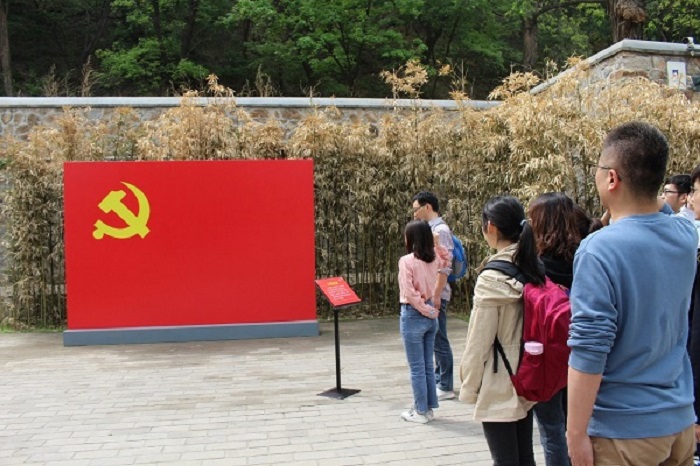 同志们首先参观了双清别墅陈列室,毛主席香山故居和香山办公室,香山防空洞,以及刘少奇、朱德等同志的办公居住地来青轩等。在双清别墅东侧平房旧址前,举行了入党宣誓仪式,在党支部书记骆健俊研究员带领下,新发展的预备党员张萱萱同志在党旗下庄严宣誓,其他党员也一起重温了入党誓词。双清别墅参观结束后,同志们又来到香山革命纪念馆,按照历史进程依次参观了纪念馆的"进京'赶考'","进驻香山","继续指挥解放全中国","新中国筹建"和"不忘初心 牢记使命 永远奋斗"五个部分,对中共中央在香山期间领导全国各族人民,完成民族独立和人民解放,开启中国历史发展新纪元的光辉历程有了更加深入的了解。