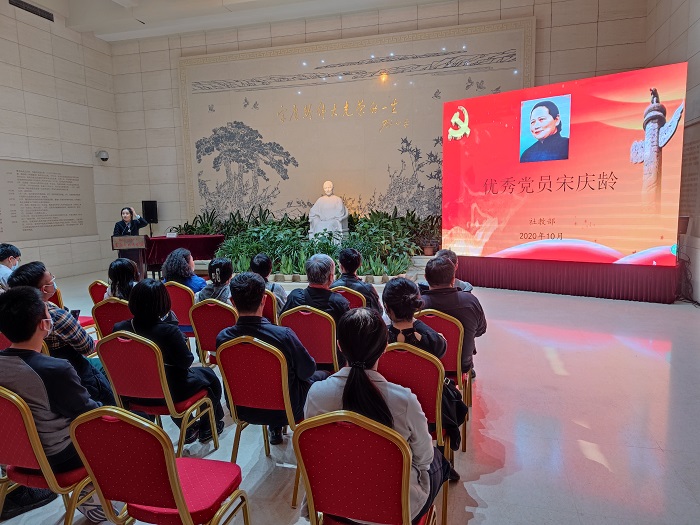 参观伊始,宋庆龄故居社教部李主任结合党史为党员同志们生动的讲述了宋庆龄同志的生平事迹,并对许多重点事件进行了深入的解读,为党员同志们开展了一次特别的党课培训。接下来在党课培训结束后,支部党员在薛蓉书记的带领下重温了入党誓词。最后,宋庆龄故居的工作人员带领支部党员先后参观了宋庆龄生平展序厅、宋庆龄生前所居住的主楼、鸽子房等,使得同志们对宋庆龄故居背后所承载的历史有了更为深入的了解。