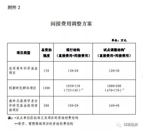 为贯彻落实《国务院关于优化科研管理提升科研绩效若干措施的通知》(国发〔2018〕25号)文件精神,国家自然科学基金委员会(以下简称自然科学基金委)将在国家自然科学基金(以下简称科学基金)部分项目类型中,开展提高智力密集型和纯理论基础研究项目间接费用比例的试点工作。具体通知如下: