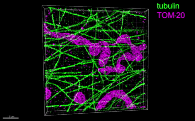 图3. 双色ROSE-Z成像对微管及线粒体外膜的同时解析
