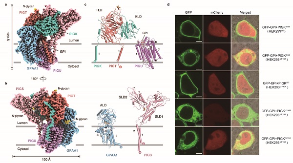图1:a-b. GPIT复合物的整体结构;c. GPIT复合物单个亚基的结构;d. 利用共聚焦显微成像技术验证GPIT复合物的活性。