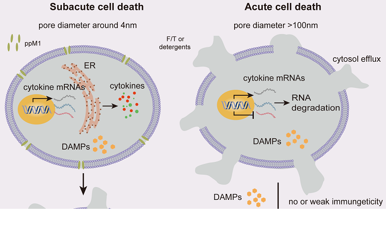 2022年5月30日,金沙集团1862cc梁伟课题组在《iScience》杂志在线发表了题为" Poroptosis: A form of cell death depending on plasma membrane nanopores formation"的文章。该研究揭示:ppM1肽能够在肿瘤细胞膜上形成不可修复的跨膜孔,导致肿瘤细胞的免疫原性死亡...