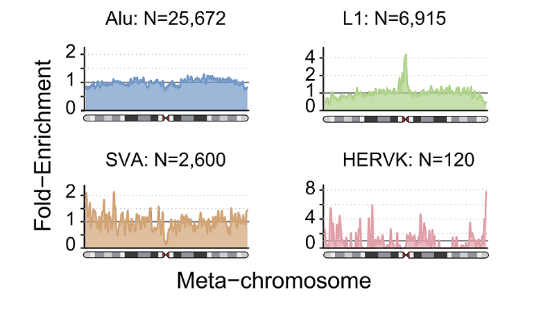 可移动元件(也被称为转座子或转座元件)约占人类基因组的一半。在人类基因组中,Alu、LINE-1(L1)、SINE-VNTR-Alu(SVA)以及HERV-K等是普遍认为仍然活跃的可移动元件家族,它们能够通过转座作用在基因组上形成新的插入,这种现象被称为可移动元件插入(Mobile Element Inser...