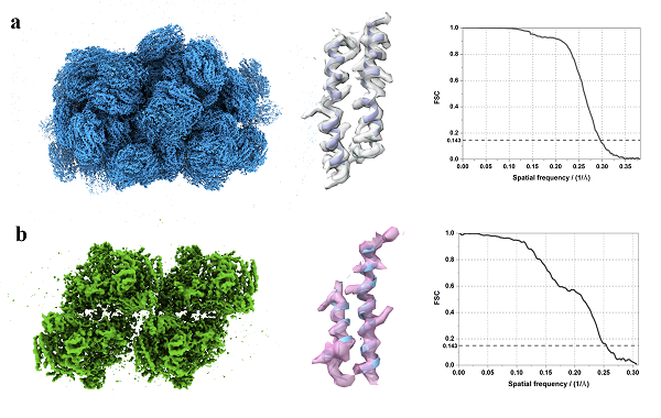 图1. 藻胆体(a)与光系统II(b)的高分辨原位结构