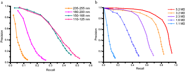 图2. GisSPA算法探测效率与切片厚度(a)和蛋白质分子量(b)的相关性