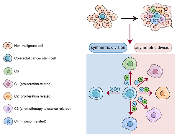 这一研究表明CCSC不对称分裂有助于早期ITH的建立。因此,靶向肿瘤干细胞的不对称分裂能够改变ITH的组成,并有利于CRC治疗。
