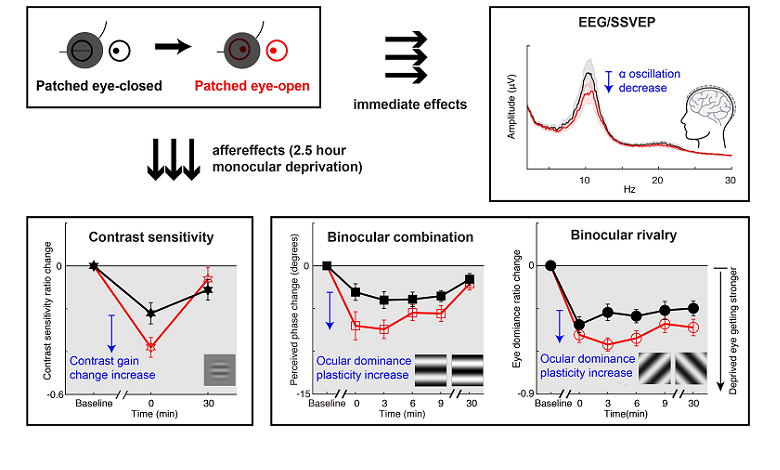 双眼平衡对视觉敏感度,立体视觉等功能至关重要。对于双眼不平衡的成人,通过对较弱的眼睛进行单眼遮盖治疗可以诱发眼优势可塑性,促进双眼平衡的恢复。中科院生物物理研究所张朋研究员课题组与温州医科大学附属眼视光医院周佳玮研究员团队合作,通过单眼遮盖结合睁闭眼实验范...
