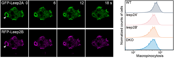 图1. 巨胞饮杯定位的Leep2A/2B RasGAP复合体调控细胞的巨胞饮水平