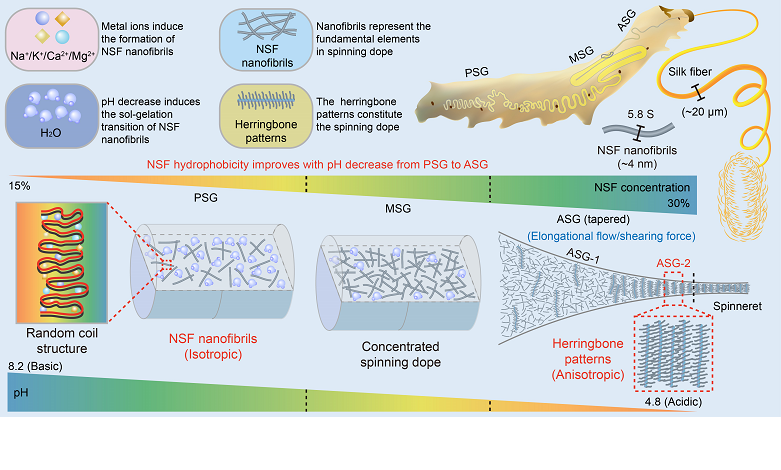 家蚕和蜘蛛等泌丝动物拥有类似的纺丝器官和纺丝机制,它们以水溶性蛋白为原料,在常温、常压下通过特定的组装和结构转变,生产出强度和韧性等综合力学性能优异的丝状纤维。多年来,研究人员一直致力于家蚕和蜘蛛等的天然纺丝机制的研究,希望通过模仿自然界的解决方案,优化和...